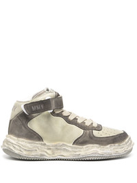 Wayne Brushed suede high-top sneakers Wayne Brushed suede high-top sneakers from MAISON MIHARA YASUHIRO featuring light beige, grey, calf leather, suede, embroidered logo, logo patch at the tongue, perforated detailing, contrasting branded heel counter, round toe, front lace-up fastening, front touch-strap fastening and chunky rubber sole. When buying this unisex item, keep in mind that it is graded in standard men's sizing.. Imported Composition Leather 100% SIZE & FIT Measurement HEEL 1.57 in(4 cm) Sole height 1.18 in(3 cm) Washing instructions Do Not Wash/Do Not Dry Clean