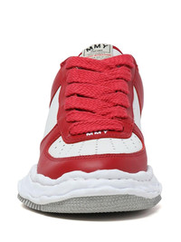 Wayne low-top sneakers Maison Mihara Yasuhiro's Wayne sneakers stand out thanks to their original sole - created by the designer MIHARA and modelled by hand using clay. This model features a two-tone white and red design that is crafted from smooth leather and enhanced with branded details on the tongue and at the heel. Highlights - White/red - Leather - Round toe - Front lace-up fastening - Logo patch at the tongue - Branded insole - Rubber sole Imported Composition Leather 100% Lining: Fabric 100% Sole: Rubber 100% SIZE & FIT Measurement HEEL 1.96 in(5 cm) Sole height 1.57 in(4 cm)
