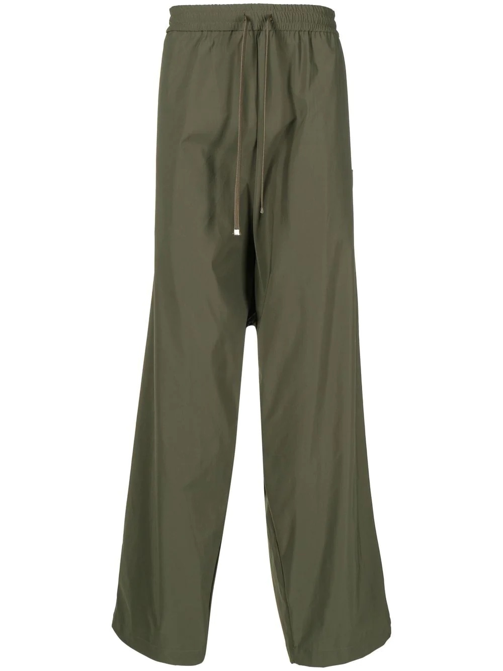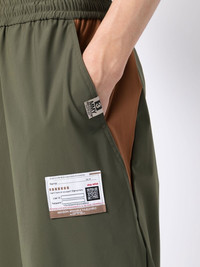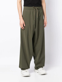 wide-leg drawstring trousers khaki logo patch to the side mini logo tag contrasting panel detail elasticated drawstring waistband wide leg drop crotch mid-rise two diagonal pockets to the sides rear welt pocket Imported Composition Polyester 100% SIZE & FIT Model measurements Height 6 ft 2 in(1.87 m) Bust/Chest 34.25 in(87 cm) Hips 36.22 in(92 cm) Waist 29.52 in(75 cm) FittingInformation This piece fits true to size. We recommend you get your regular size Designed for a slim fit at the waist and loose over the leg Made with a mid-weight non-stretch fabric