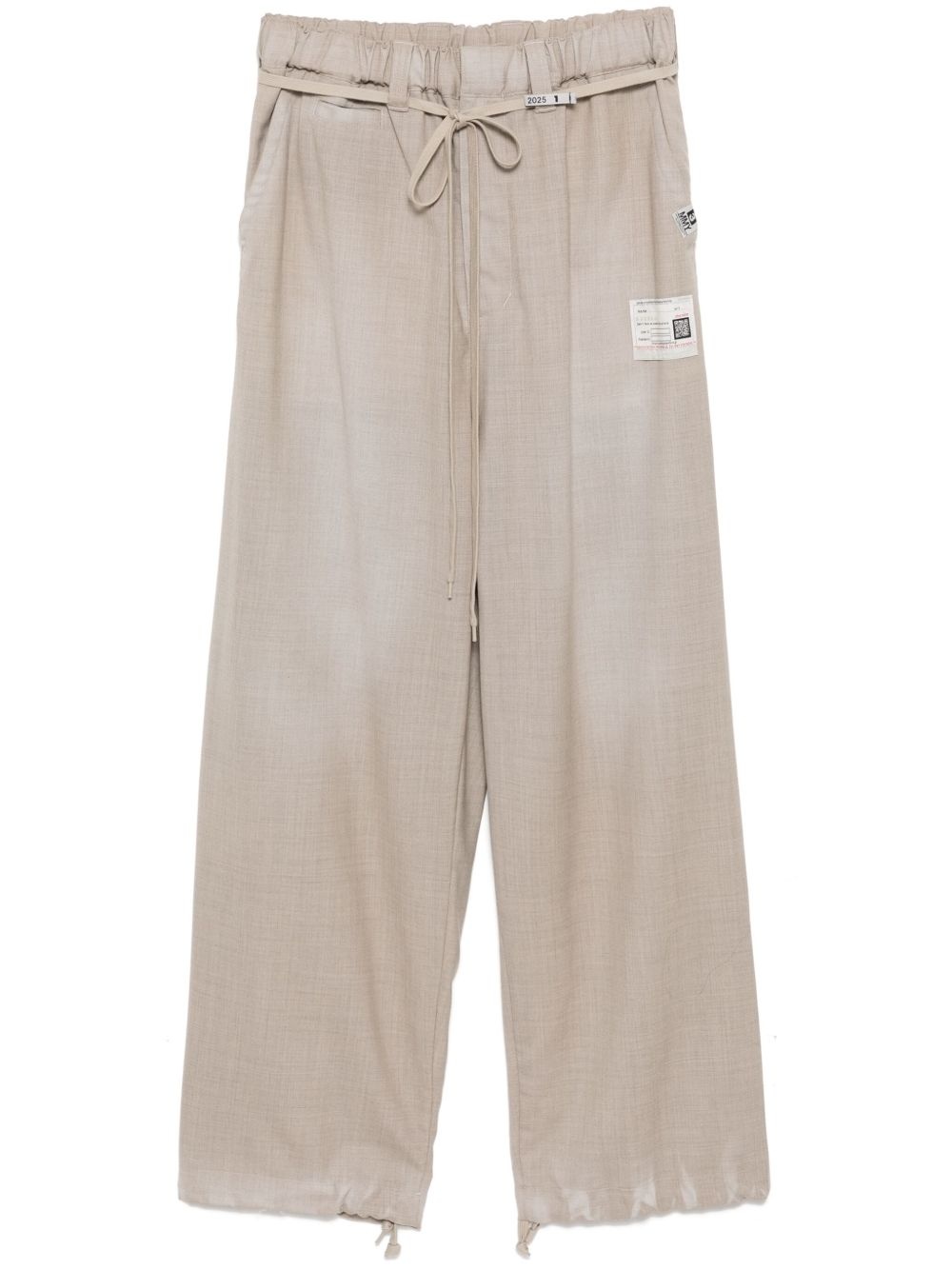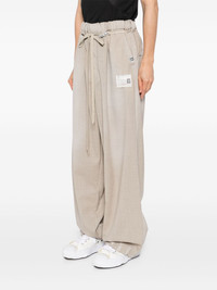 wool pants Highlights - Beige - Elasticated waistband with internal drawstring - Elasticated drawstring waistband - Two side slash pockets - Two rear jetted pockets Imported Composition Wool 100% SIZE & FIT Model measurements Height 6 ft 1 in(1.85 m) Bust/Chest 35.43 in(90 cm) Hips 36.22 in(92 cm) Waist 28.74 in(73 cm) FittingInformation Designed with a wide leg, offering a loose and roomy fit The internal drawstring at the hem allows for fitted preferences at the ankle Made from a midweight non-stretch fabric Washing instructions Dry Clean Only