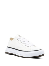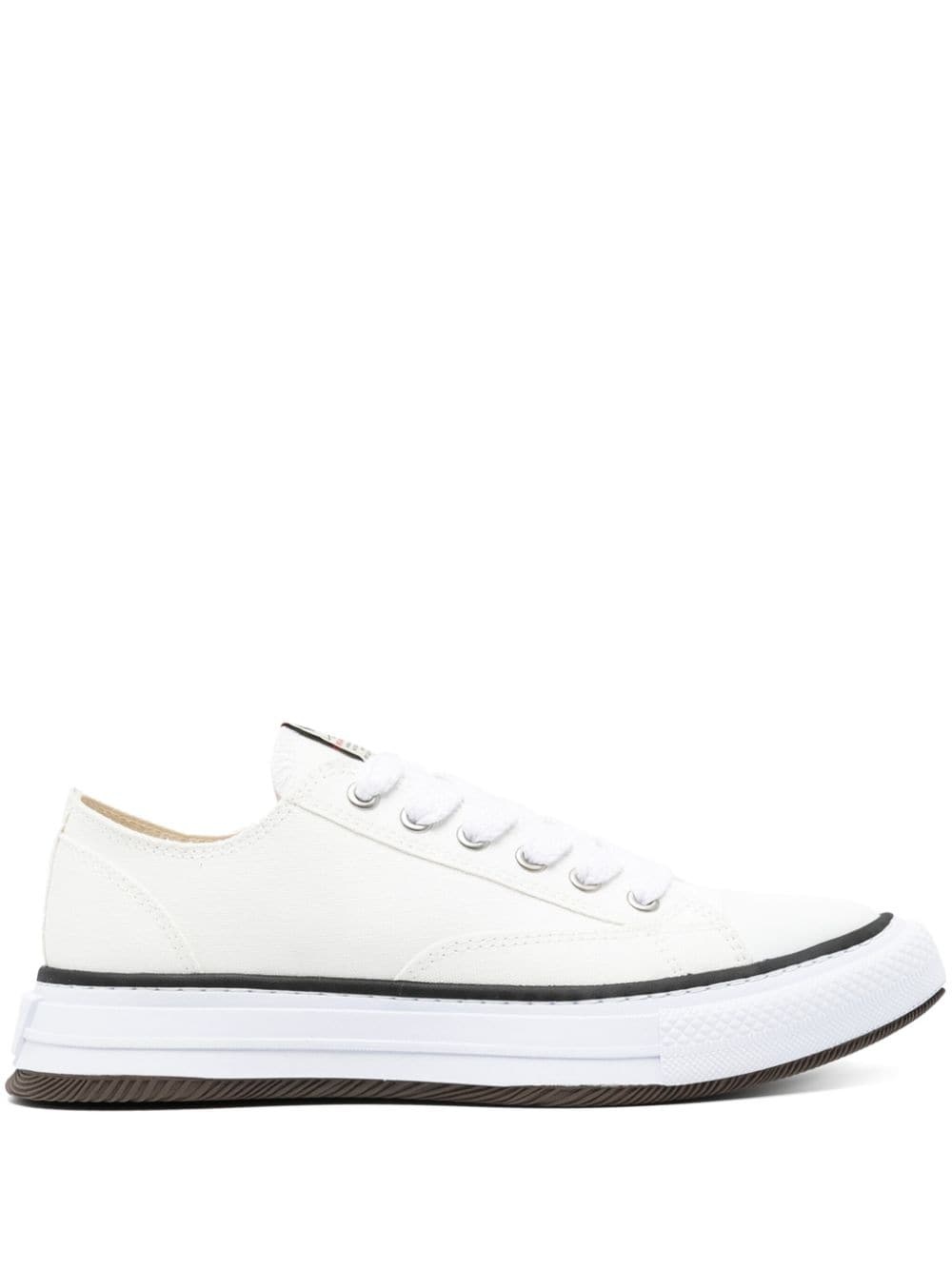 Yucca pointed-toe sneakers Ever innovative, Maison Mihara Yasuhiro presents the Yucca sneakers. Made from white cotton canvas, they feature a sleek low-top silhouette distinguished by its pointed toe, whose shape is reminiscent of the tuber that gives the model its name. They're finished with logo details at the tongue and rubber sole. Highlights - White - Cotton - Canvas - Logo patch at the tongue - Logo at the sole - Pointed toe - Rubber toecap - Front lace-up fastening - Branded insole - Rubber outsole Imported Composition Cotton 100% SIZE & FIT Measurement HEEL 2.75 in(7 cm) PLATFORM 1.57 in(4 cm)