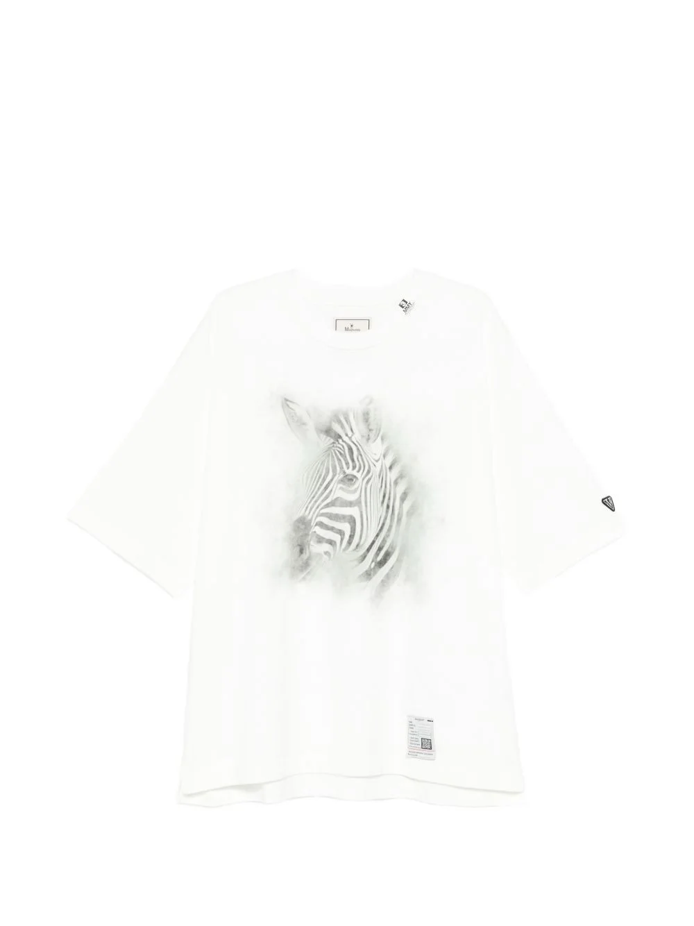 zebra-print T-shirt Highlights - White - Zebra print - Logo patch to the sleeve - Boxy fit - Crew neck - Short sleeves Imported Composition Cotton 100% Washing instructions Machine Wash