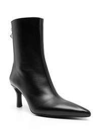 75mm leather ankle boots Highlights - Black - Calf leather - Smooth grain - Ankle-length - Rear zip fastening - Branded zip puller - Pointed toe - 75mm sculpted heel - Rubber outsole Imported Composition Outer: Calf Leather 100%, Polyester 60%, zamac 25%, Aluminium 15% Lining: Goat Skin 100% Sole: Calf Leather 100% SIZE & FIT Measurement CIRCUMFERENCE 10.62 in(27 cm) HEEL 2.75 in(7 cm) HEIGHT 7.08 in(18 cm)
