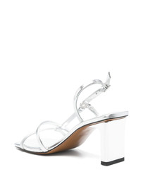 80mm metallic strappy sandals Highlights - Silver-tone - Buckle-fastening ankle strap - Square open toe - Mid heel - Branded leather insole Imported Composition Outer: Calf Leather 100% Sole: Calf Leather 100% Lining: Calf Leather 100% SIZE & FIT Measurement HEEL 3.14 in(8 cm)