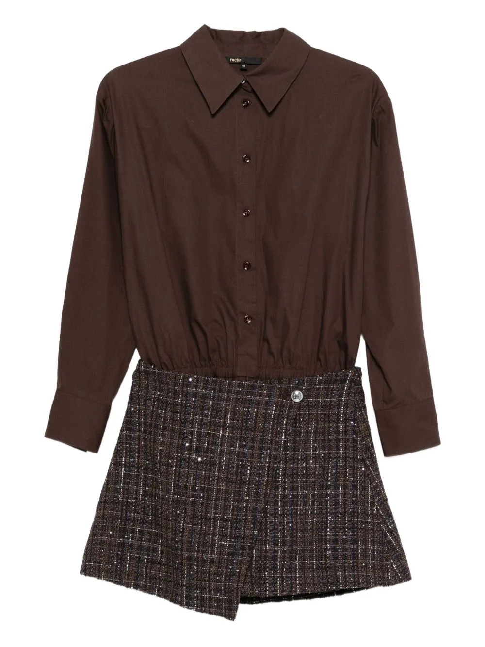 asymmetric mini dress Highlights - Chocolate brown - Check pattern - Button fastening - Long sleeves - Asymmetric hem Imported Composition Lining: Cotton 49%, Acrylic 21%, Polyester 15%, Polyamide 12%, Viscose 2%, Metallised Fibres 1% Outer: Cotton 100% SIZE & FIT Model measurements Height 5 ft 9 in(1.76 m) Bust/Chest 31.49 in(80 cm) Hips 35.03 in(89 cm) Waist 24.8 in(63 cm) Washing instructions Read Manufacturer Guidelines