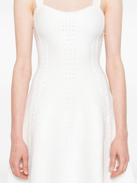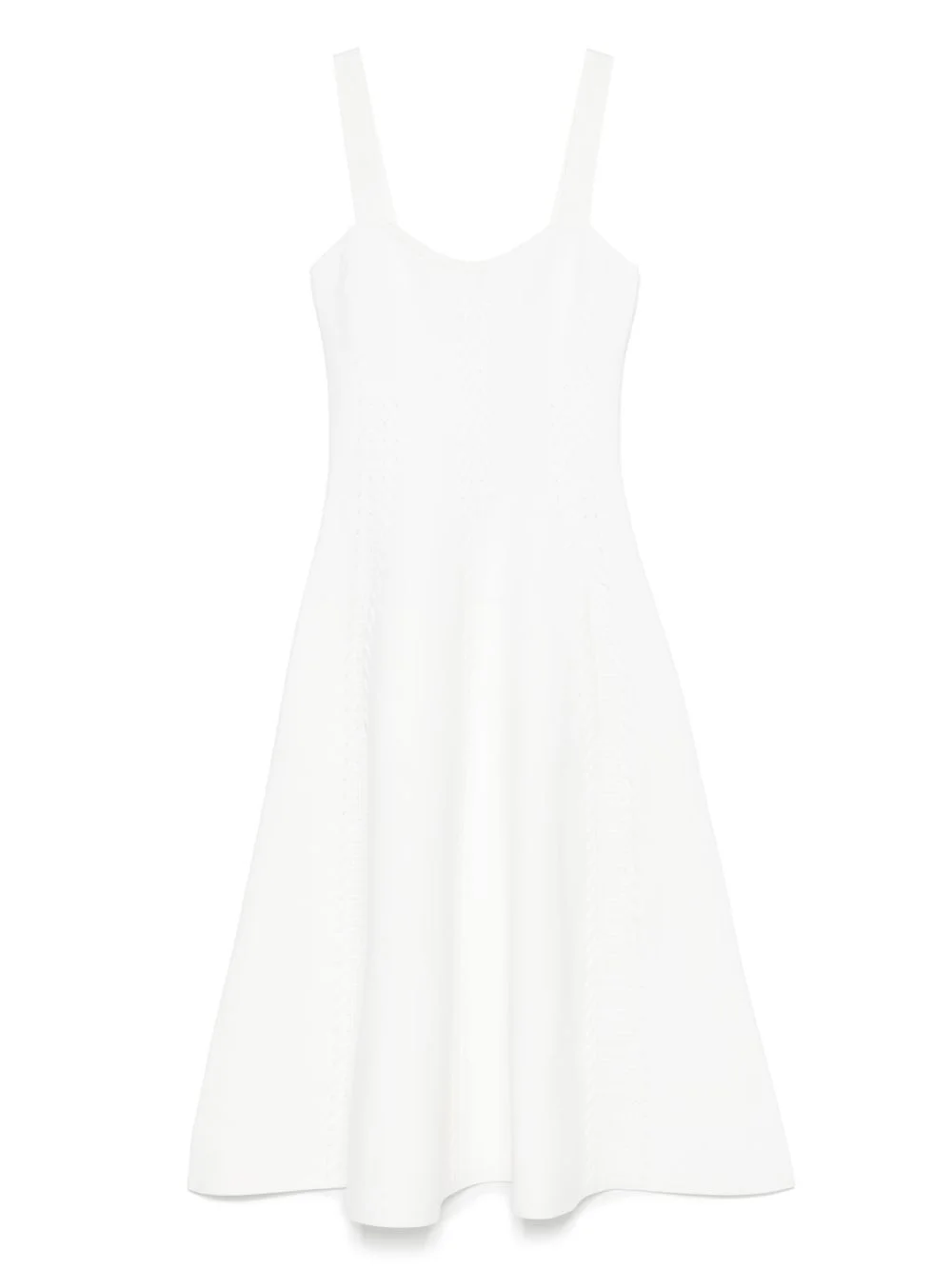 babydoll knitted dress Highlights - White - Side zip fastening - Scoop neck - Fitted waistline - Flared Imported Composition Recycled Polyester 100% SIZE & FIT Model measurements Height 5 ft 10 in(1.79 m) Bust/Chest 35.43 in(90 cm) Hips 35.03 in(89 cm) Waist 25.19 in(64 cm) FittingInformation Designed for a close fit at the chest and waist with a loose fit at the hip Made with a midweight knit, this piece offers some stretch Washing instructions Hand Wash