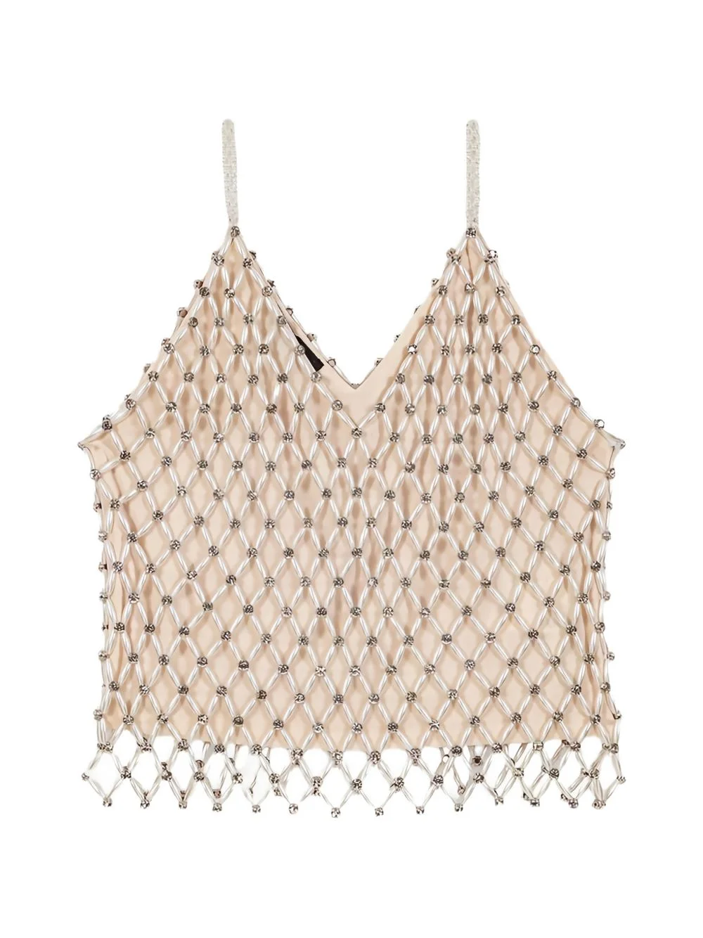 beaded V-neck top Highlights - Ecru - Bead embellishment - Shoulder straps - V-neck Imported Composition Polyester 87%, Elastane 13% Washing instructions Hand Wash