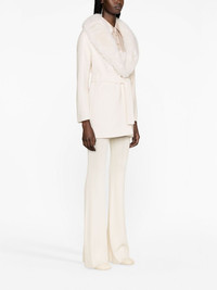 belted faux-fur coat This Maje coat is defined by its faux-fur lapel collar, while a removable belt completes the design. Highlights - White - Faux-fur collar - Detachable belt - Long sleeves - Two side slit pockets Imported Composition Outer: Polyester 100%, Wool 78%, Polyamide 22% Lining: Polyester 100% SIZE & FIT Model measurements Height 5 ft 11 in(1.8 m) Bust/Chest 34.25 in(87 cm) Hips 35.82 in(91 cm) Waist 24.8 in(63 cm) FittingInformation Designed to be unstructured, offering a loose fit throughout The tie fastening gives an adaptable and personalised fit Made from a midweight non-stretch fabric This piece fits true to size – take your usual size Washing instructions Dry Clean Only
