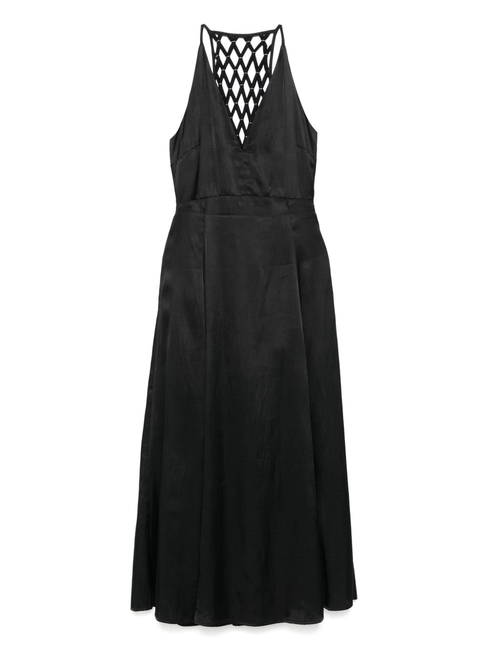 braided-back maxi dress Highlights - Black - Side zip fastening - V-neck - Fitted waistline - Satin finish Imported Composition Viscose 100%, Cotton 100% Washing instructions Hand Wash