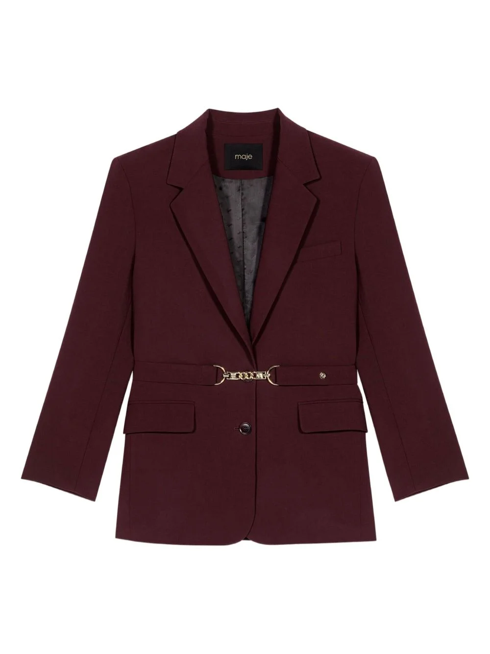 chain-detail blazer Highlights - Burgundy red - Chain detail - Single button fastening - Flap pockets - Long sleeves - Notched lapels Imported Composition Outer: Wool 53%, Polyester 42%, Elastane 5% Viscose 100% Washing instructions Read Manufacturer Guidelines