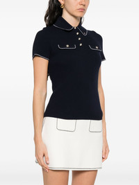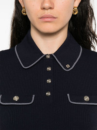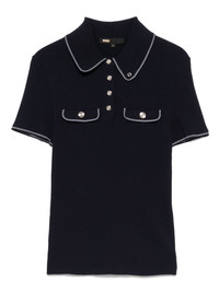 contrast-trim polo shirt Highlights - Navy blue - Front button placket - Chest flap pockets - Polo collar - Short sleeves Imported Composition Ecovero 65%, Recycled Polyamide 35% SIZE & FIT Model measurements Height 5 ft 9 in(1.75 m) Bust/Chest 32.67 in(83 cm) Hips 36.22 in(92 cm) Waist 24.8 in(63 cm) FittingInformation Designed for a close fit throughout Made with a midweight knit, this piece offers some stretch Washing instructions Hand Wash