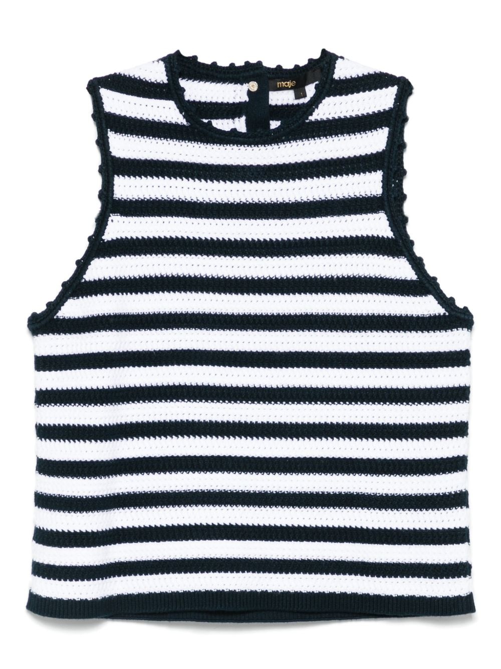 crochet-knit top Highlights - White - Rear button fastening - Crew neck - Sleeveless - Crochet trim Imported Composition Viscose 70%, Polyester 30% Washing instructions Hand Wash