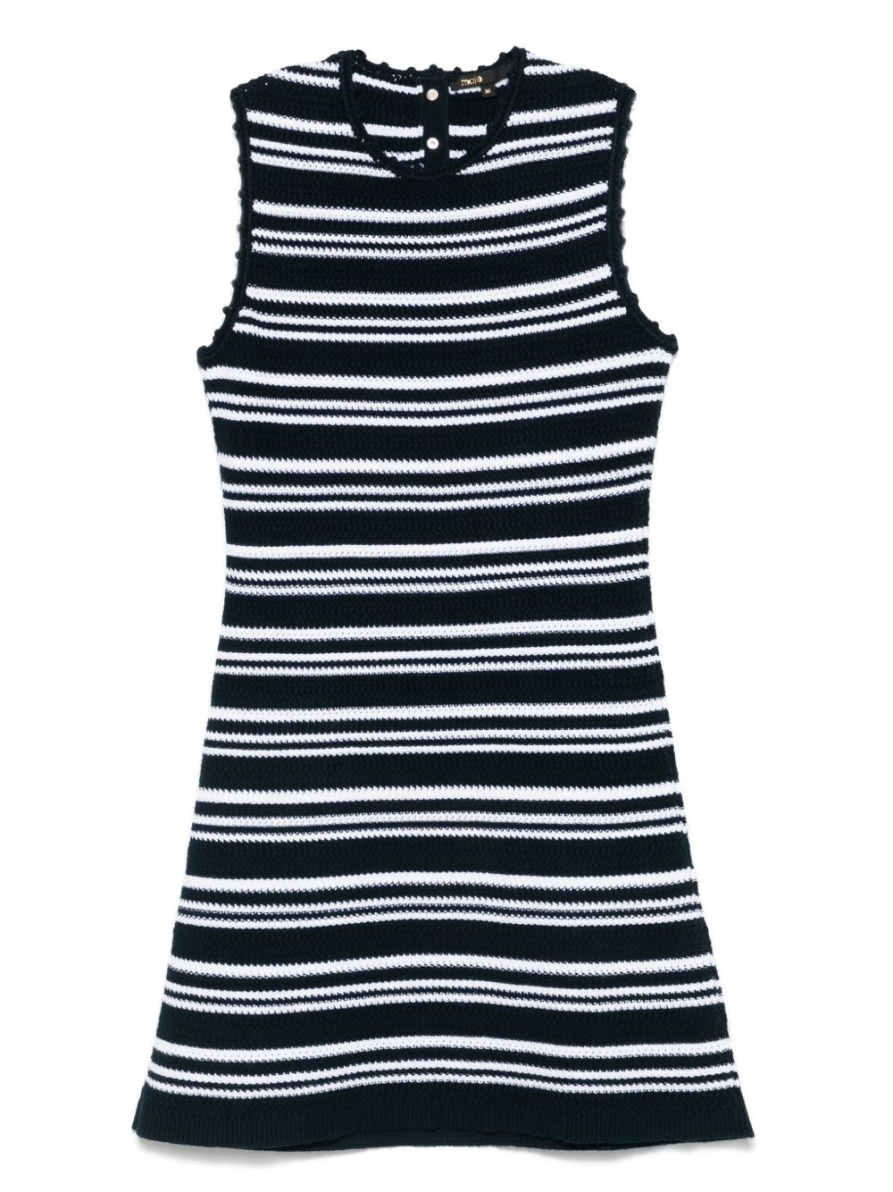 crochet mini dress Highlights - Navy blue - Rear button fastening - Crew neck - Sleeveless - Crochet trim Imported Composition Viscose 70%, Polyester 30% Washing instructions Hand Wash