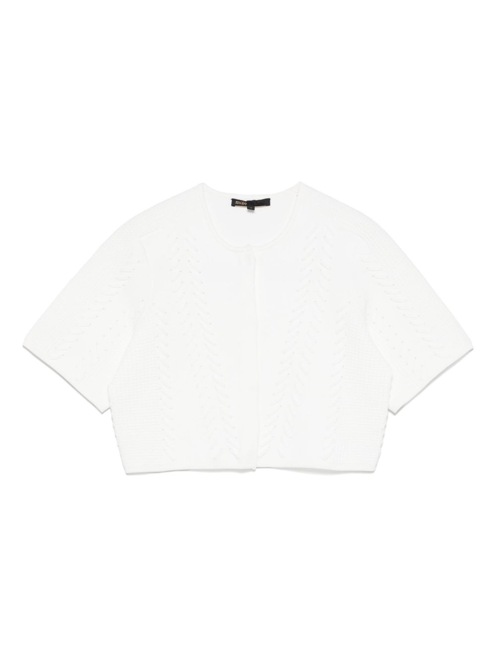 cropped cardigan Highlights - White - Concealed front fastening - Crew neck - Short sleeves Imported Composition Polyester 100% SIZE & FIT Model measurements Height 5 ft 10 in(1.79 m) Bust/Chest 35.43 in(90 cm) Hips 35.03 in(89 cm) Waist 25.19 in(64 cm) FittingInformation Designed for a slim fit that sits just away from the body offering a close yet comfortable fit Cropped in length Made with a midweight knit, this piece offers some stretch Washing instructions Hand Wash