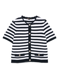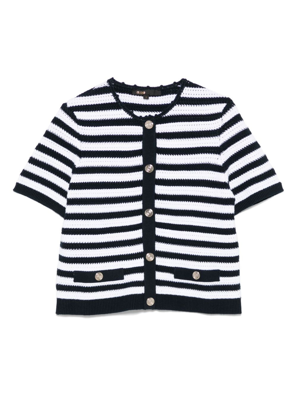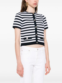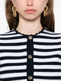 cropped crochet cardigan Highlights - White - Vertical stripe embroidery - Front button fastening - Short sleeves Imported Composition Viscose 70%, Polyester 30% SIZE & FIT Model measurements Height 5 ft 10 in(1.79 m) Bust/Chest 35.43 in(90 cm) Hips 35.03 in(89 cm) Waist 25.19 in(64 cm) FittingInformation Designed for a slim fit that sits just away from the body offering a close yet comfortable fit Made from a midweight non-stretch fabric, this piece offers minimal elasticity when worn Washing instructions Hand Wash