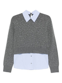 crystal-embellished layered sweater Highlights - Grey - Crystal embellishments - Layered design - Detachable shirt-layer - Long sleeves - Crew neck Imported Composition Wool 100% SIZE & FIT Model measurements Height 5 ft 11 in(1.8 m) Bust/Chest 32.28 in(82 cm) Hips 35.82 in(91 cm) Waist 25.19 in(64 cm) Washing instructions Read Manufacturer Guidelines