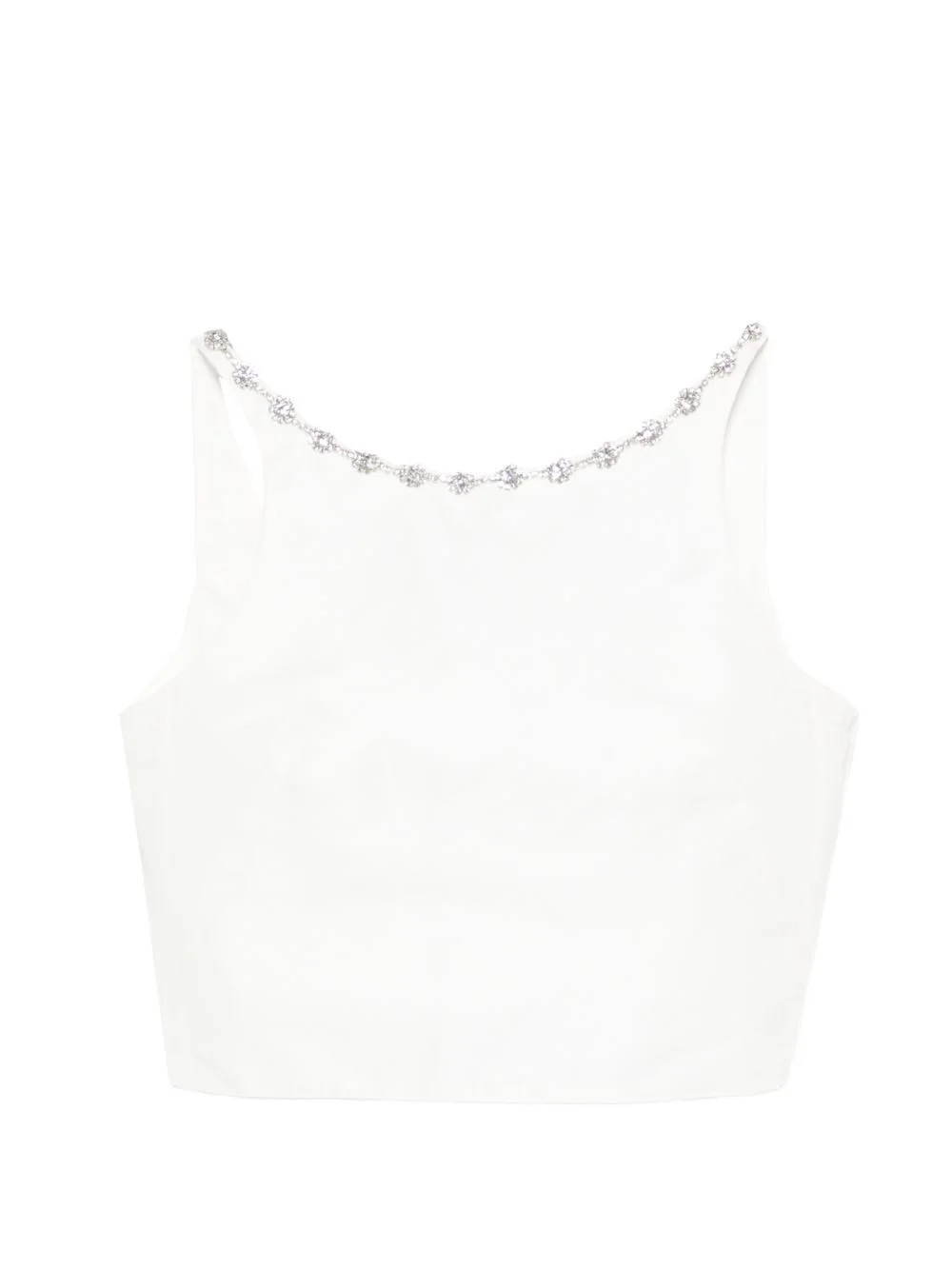 Crystal-embellished top Highlights - White - Crystal embellishment - Sleeveless - Round neck - Crop style Imported Composition Recycled Polyester 50%, Polyester 50% Washing instructions Hand Wash