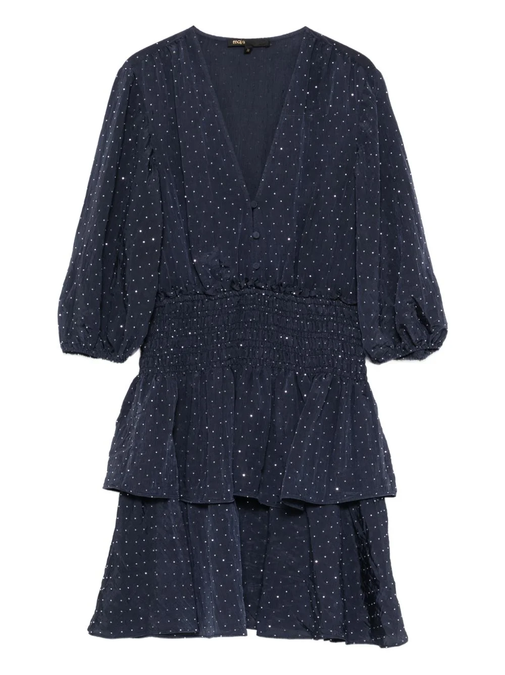 crystal-embellished V-neck mini dress Highlights - Navy blue - Crystal embellished - V-neck - Tiered skirt - Elasticated waist Imported Composition Polyester 70%, Polyamide 30% Washing instructions Read Manufacturer Guidelines