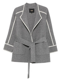 double-breasted wool coat Highlights - Grey - Wool - Self-tie belt - Embroidered trim - Long sleeves Imported Composition Wool 83%, Polyamide 17% SIZE & FIT Model measurements Height 5 ft 10 in(1.78 m) Bust/Chest 33.46 in(85 cm) Hips 36.22 in(92 cm) Waist 23.22 in(59 cm) Washing instructions Dry Clean Only