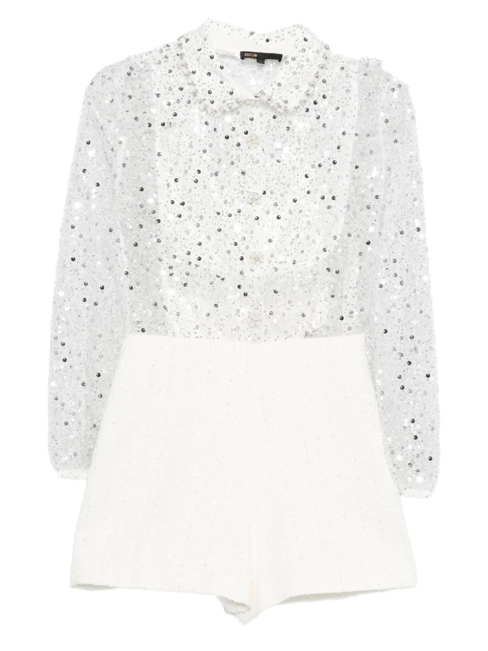 embellished collared jumpsuit Highlights - Off-white - Embellishment - Collared - Button fastening - Two-piece design Imported Composition Fabric 100% SIZE & FIT Model measurements Height 5 ft 10 in(1.78 m) Bust/Chest 31.49 in(80 cm) Hips 37 in(94 cm) Waist 23.62 in(60 cm) Washing instructions Read Manufacturer Guidelines