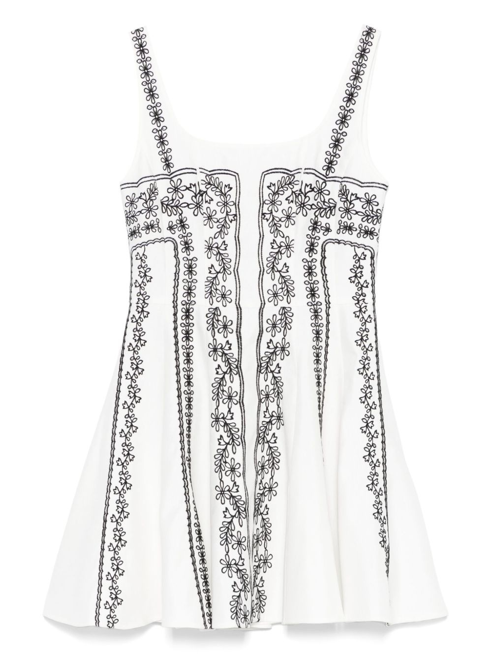 embroidered-strap mini dress Highlights - White - Rear zip fastening - Sleeveless - Floral print Imported Composition Linen/Flax 54%, Viscose 46% SIZE & FIT Model measurements Height 5 ft 10 in(1.79 m) Bust/Chest 35.43 in(90 cm) Hips 35.03 in(89 cm) Waist 25.19 in(64 cm) FittingInformation Designed for a close fit at the chest and waist with a loose fit at the hip The dart stitching adds structure and a closer fit in the torso of this piece Made from a midweight non-stretch fabric Washing instructions Hand Wash