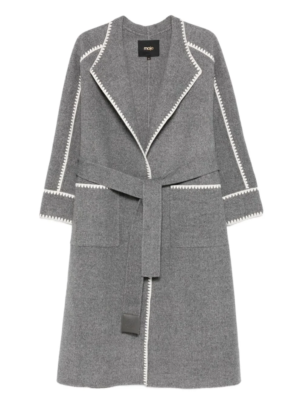 embroidered-trimmed belted coat Highlights - Grey - Wool - Self-tie belt - Embroidered trim - Patch pockets Imported Composition Wool 83%, Polyamide 17% SIZE & FIT Model measurements Height 5 ft 10 in(1.78 m) Bust/Chest 33.46 in(85 cm) Hips 36.22 in(92 cm) Waist 23.22 in(59 cm) Washing instructions Dry Clean Only