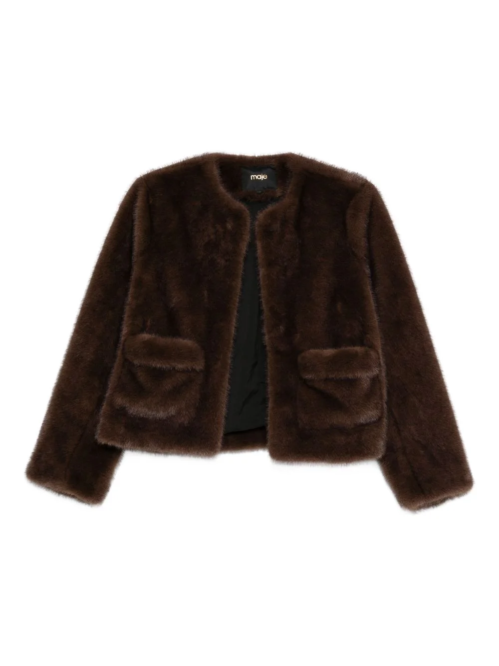 flap-pocket faux-fur jacket Highlights - Brown - Faux-fur design - Flap pockets - Open front - Long sleeves - Cropped length Imported Composition Lining: Polyester 100% Outer: Polyester 100% SIZE & FIT Model measurements Height 5 ft 9 in(1.76 m) Bust/Chest 31.49 in(80 cm) Hips 35.03 in(89 cm) Waist 24.8 in(63 cm) Washing instructions Machine Wash