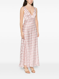 floral V-neck maxi dress Highlights - Red - Small flowers print - V-neck - Sleeveless Imported Composition Outer: Silk 100% Lining: Viscose 100% Washing instructions Hand Wash