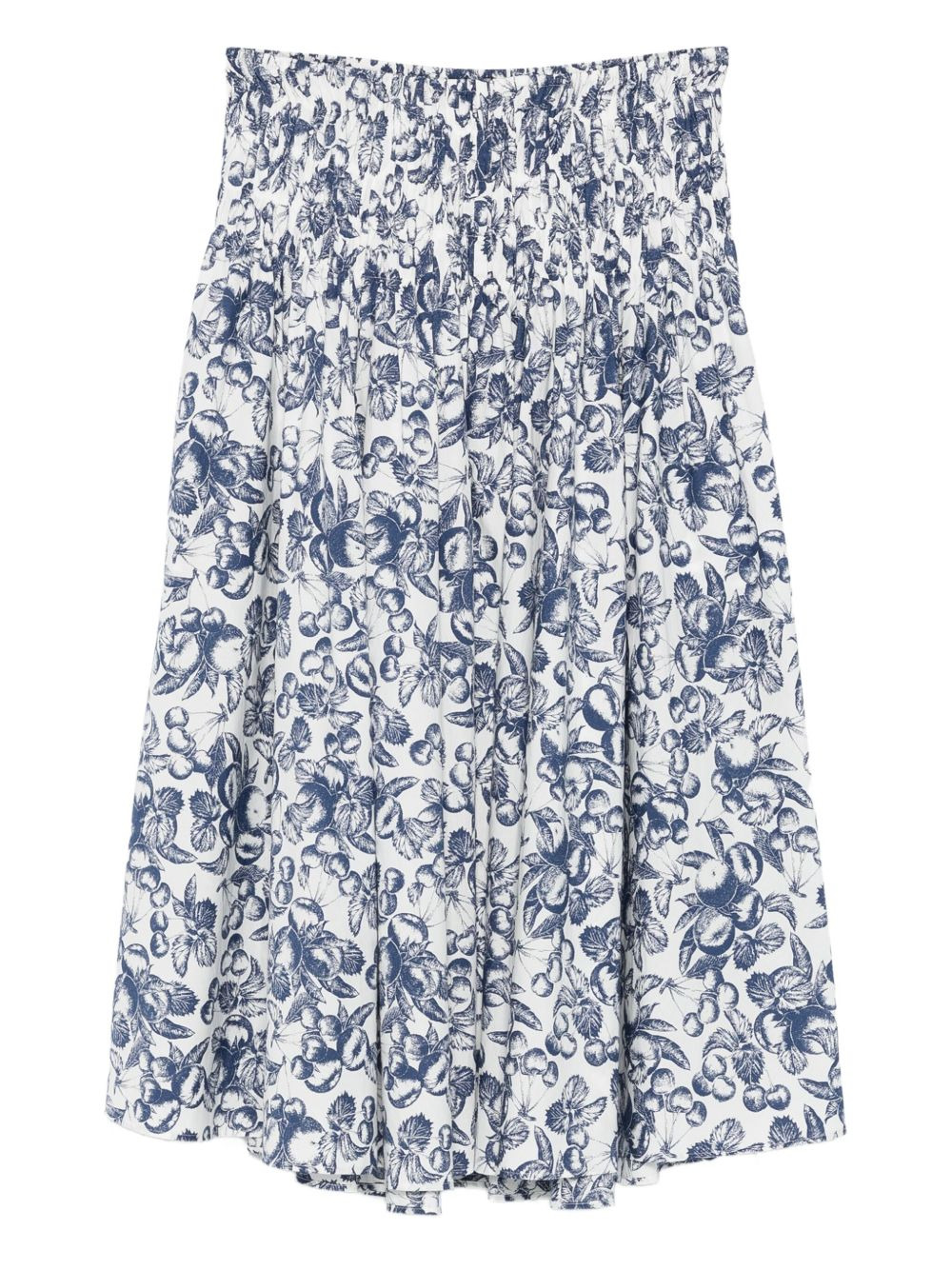 fruit-print smocked midi skirt Highlights - Off-white - Fruit print - Smocked waistband - Pleated skirt - Midi length - Cotton Imported Composition Cotton 100% Washing instructions Machine Wash
