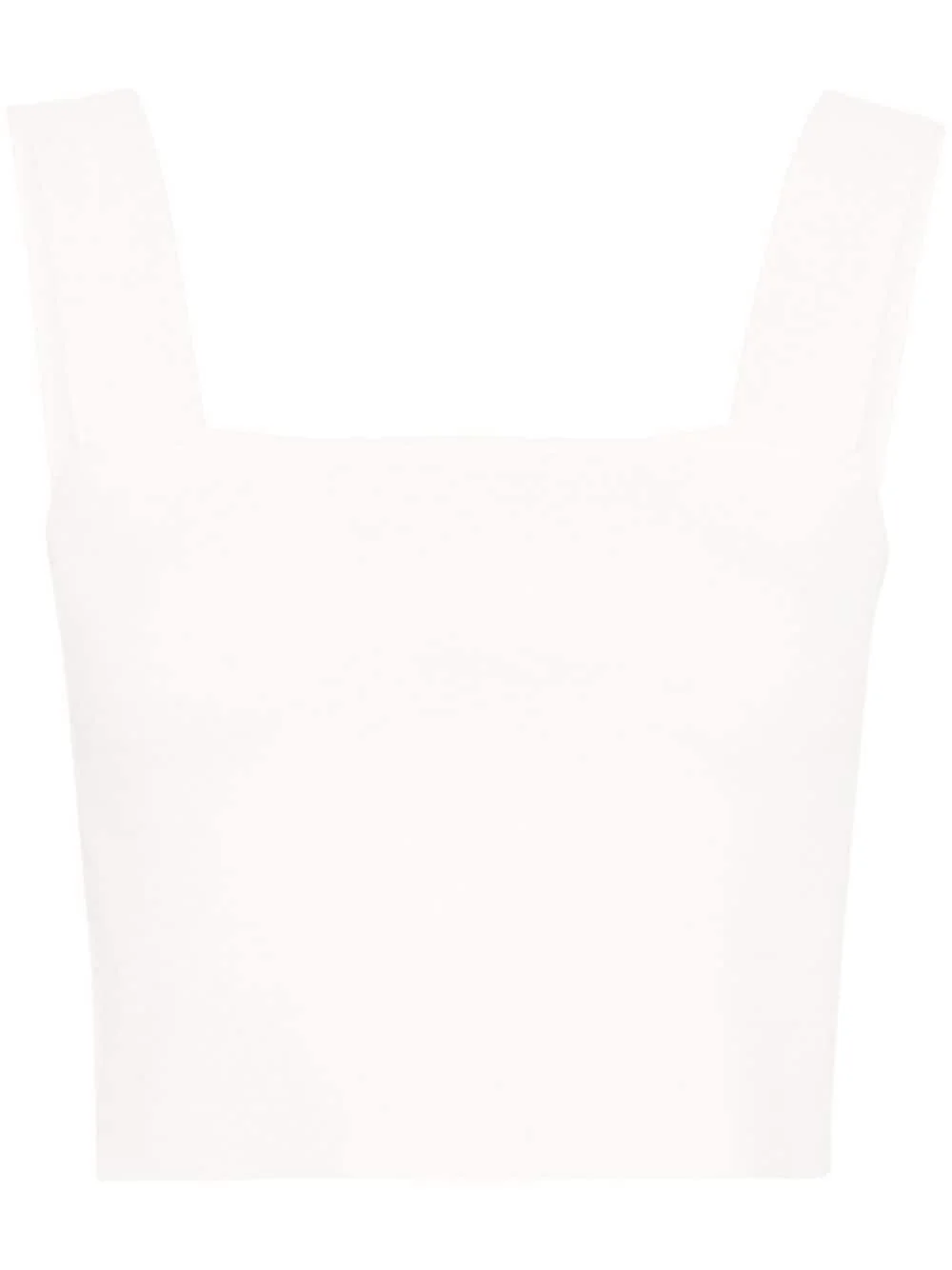 knitted crop top Highlights - White - Stretch-design - Knitted construction - Square neck - Wide shoulder straps - Straight hem - Cropped Imported Composition Viscose 70%, Polyamide 28%, Elastane 2% SIZE & FIT Model measurements Height 5 ft 10 in(1.78 m) Bust/Chest 31.49 in(80 cm) Hips 37 in(94 cm) Waist 23.62 in(60 cm) FittingInformation Designed for a slim fit that sits just away from the body offering a close yet comfortable fit Cropped in length Made with a midweight knit, this piece offers some stretch This piece fits true to size – take your usual size Washing instructions Dry Clean Only