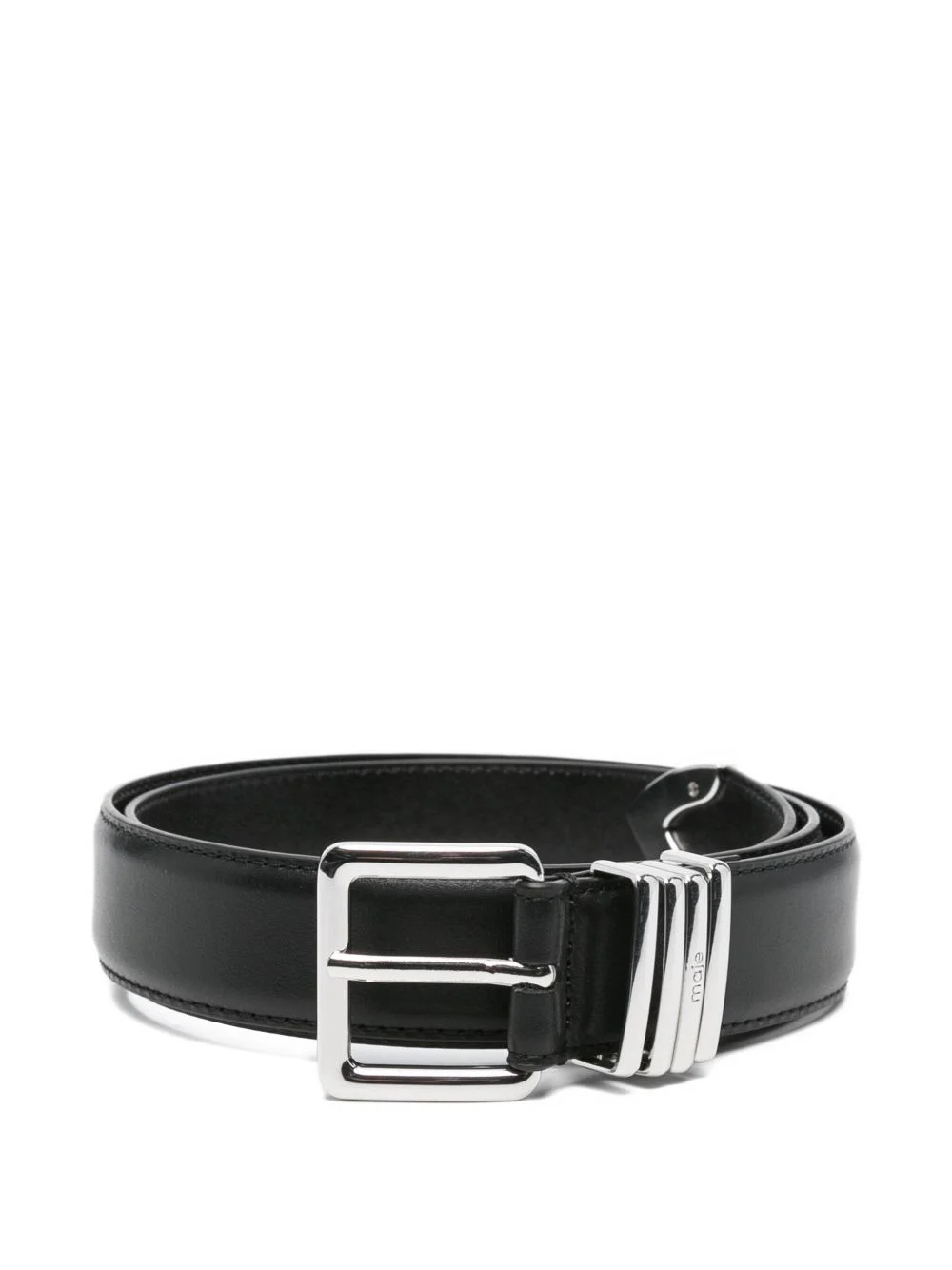 leather buckle belt Highlights - Black - Leather - Silver-tone buckle - Pointed tip Made in Italy Composition Outer: Calf Leather 100%, Polyurethane 100%, Zinc 80%, Iron 20% Lining: Polyester 70%, Viscose 30% SIZE & FIT Measurement Maximum Length 35.03 in(89 cm) Minimum Length 29.92 in(76 cm) WIDTH 1.18 in(3 cm)