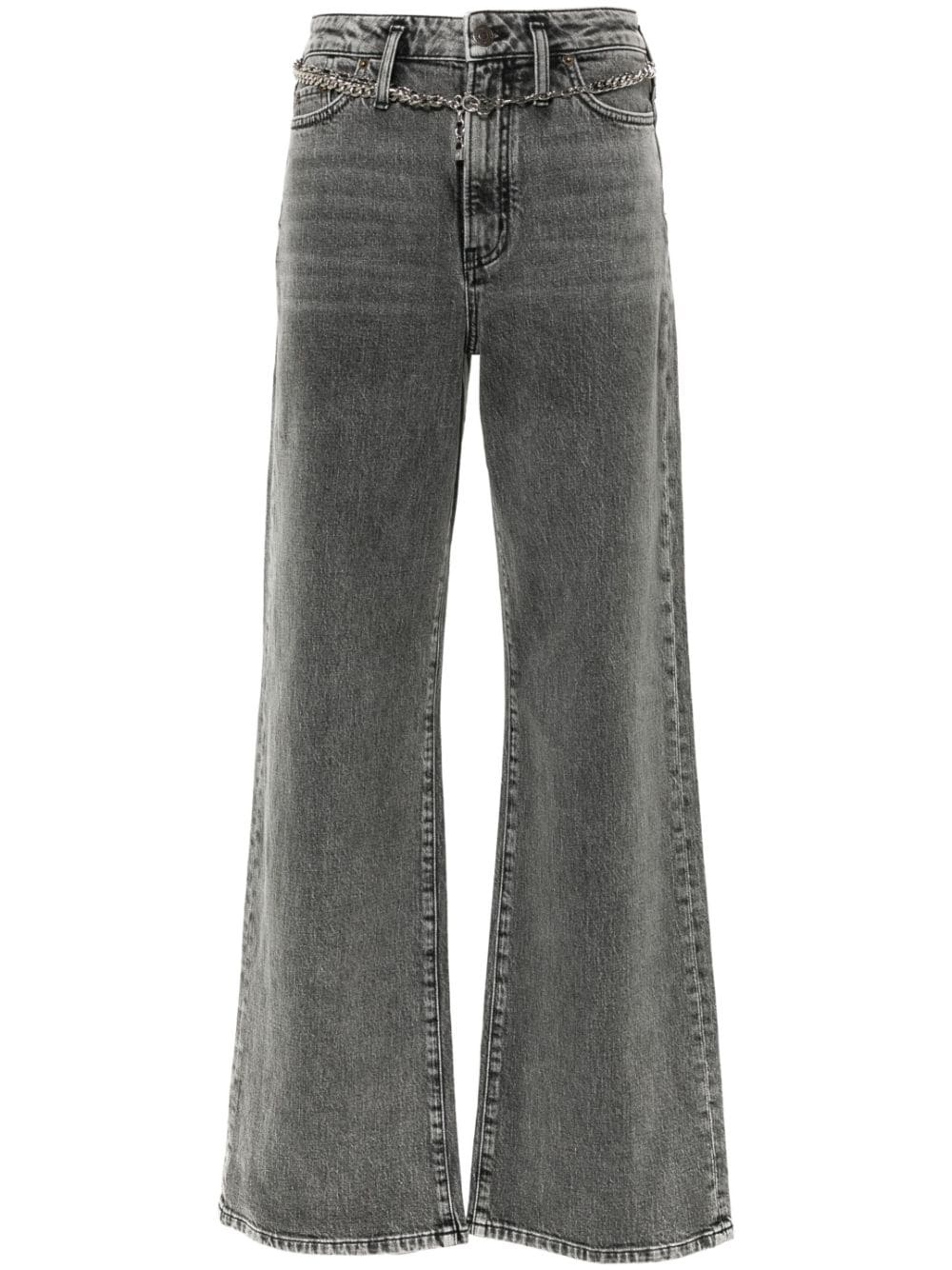 chain-belt wide-leg jeans Highlights - Grey - Stretch-cotton - Denim - Whiskering effect - Belt loops - Classic five pockets - Detachable chain-link waist belt - Logo patch to the rear - Wide leg - Concealed fly and button fastening Imported Composition Outer: CALFSKIN 100%, Cotton 99%, Elastane 1% Lining: Polyester 67%, Cotton 33% SIZE & FIT Model measurements Height 5 ft 10 in(1.78 m) Bust/Chest 33.07 in(84 cm) Hips 36.61 in(93 cm) Waist 24.8 in(63 cm) FittingInformation Designed for a straight-leg fit, these jeans allow for a close fit at the waist and an unrestricted and comfortable fit over the leg This piece fits true to size – take your usual size Washing instructions Machine Wash