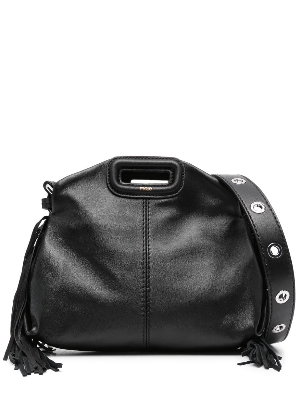 mini Miss M leather shoulder bag Highlights - Black - Sheepskin - Smooth grain - Fringe detailing - Eyelet detailing - Detachable shoulder strap - Two top handles - Main compartment Imported Composition Outer: Sheepskin 100% Lining: Polyester 100% SIZE & FIT Model measurements Height 5 ft 10 in(1.79 m) Bust/Chest 33.07 in(84 cm) Hips 35.82 in(91 cm) Waist 24.01 in(61 cm) Measurement DEPTH 4.33 in(11 cm) HEIGHT 5.11 in(13 cm) STRAP 45.27 in(115 cm) WIDTH 8.66 in(22 cm)