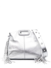 Miss M metallic-effect leather mini bag Highlights - Silver-tone - Sheepskin - Metallic finish - Logo lettering - Fringe detailing - Two top handles - Eyelet detailing - Detachable shoulder strap - Main compartment - Cotton lining Imported Composition Outer: Calf Leather 100% Lining: Polyester 100% SIZE & FIT Model measurements Height 5 ft 10 in(1.79 m) Bust/Chest 33.07 in(84 cm) Hips 35.82 in(91 cm) Waist 24.01 in(61 cm) Measurement DEPTH 4.33 in(11 cm) HEIGHT 5.11 in(13 cm) STRAP 43.7 in(111 cm) WIDTH 8.66 in(22 cm)