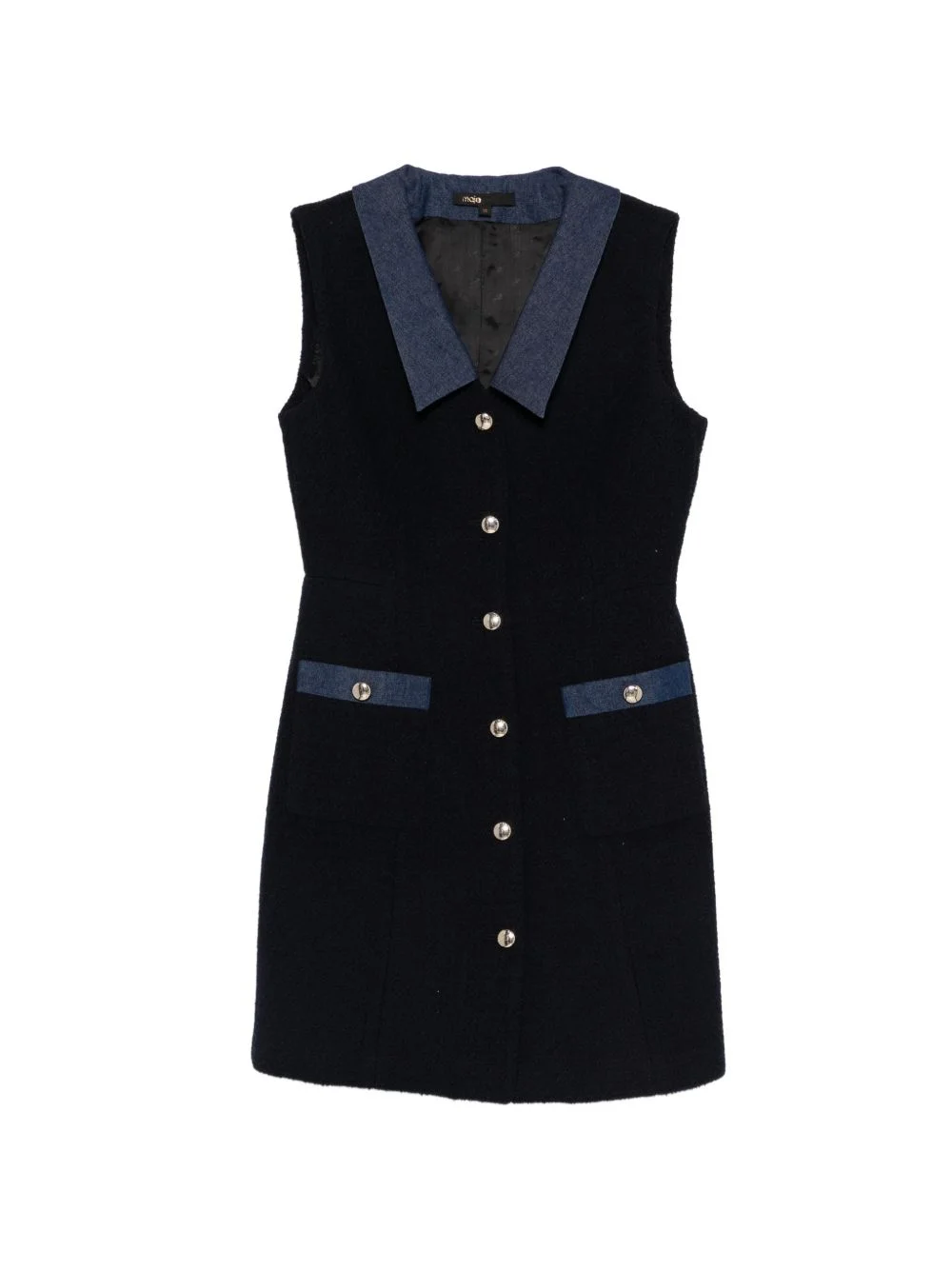 patch-pocket button mini dress Highlights - Navy blue - Button fastening - Sleeveless - Patch pockets Imported Composition Outer: Recycled Polyester 50%, Cotton 28%, Viscose 18%, Polyester 3%, Elastane 1% Lining: Viscose 100% Washing instructions Dry Clean Only