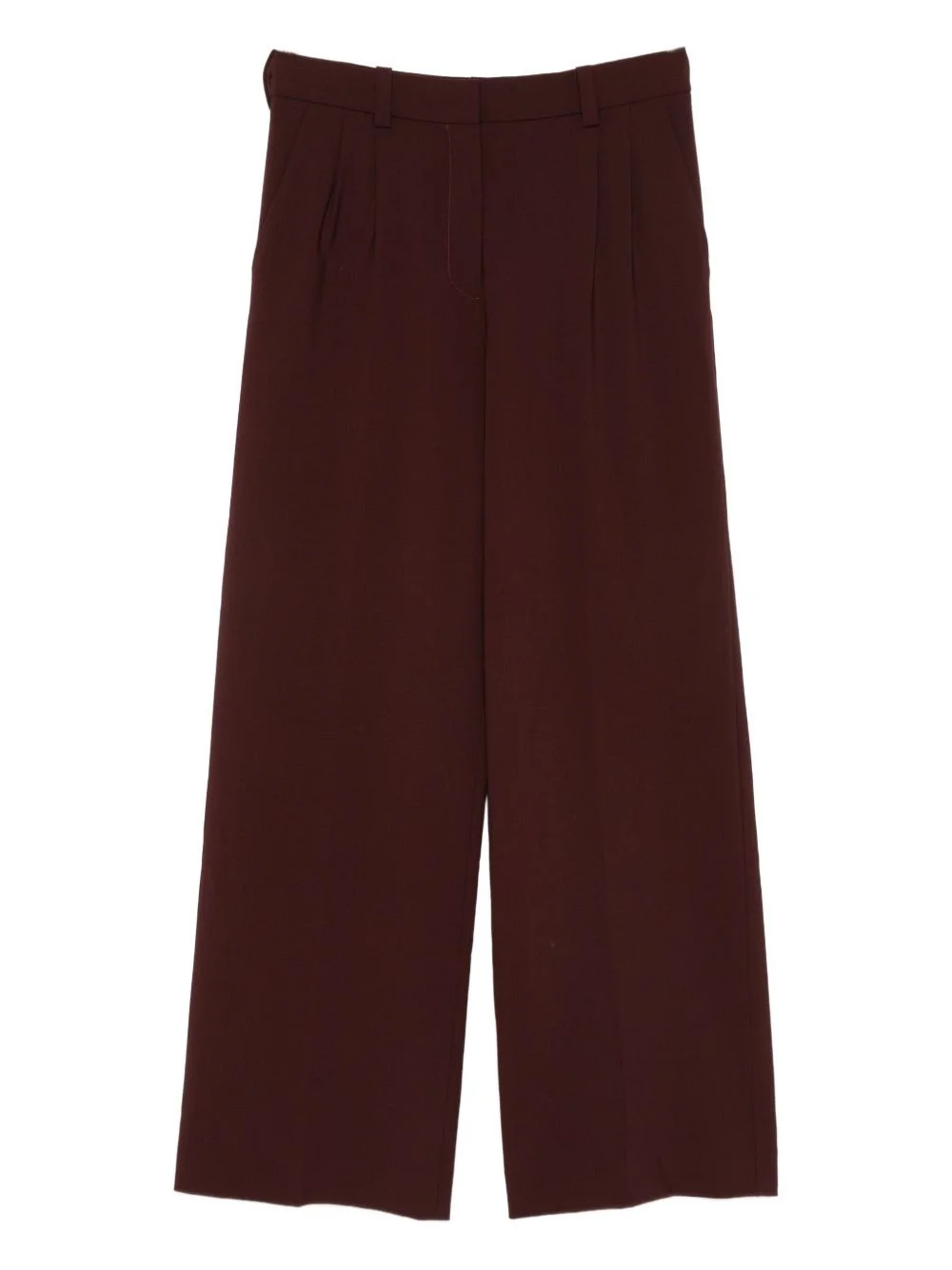 pleated straight trousers Highlights - Burgundy - Pleated front - Straight leg - Pockets - High waist Imported Composition Outer: Wool 53%, Polyester 42%, Spandex/Elastane 5% Lining: Viscose 100% SIZE & FIT Model measurements Height 5 ft 9 in(1.75 m) Bust/Chest 34.64 in(88 cm) Hips 36.61 in(93 cm) Waist 26.37 in(67 cm) Washing instructions Dry Clean Only