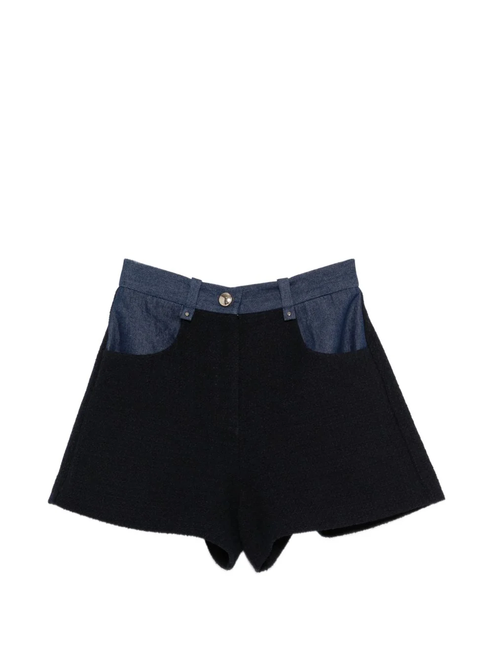 pocket shorts Highlights - Navy blue - Tonal stitching - Two front pockets - Button closure - Tweed effect - Mini length Imported Composition Outer: Polyester 53%, Cotton 28%, Viscose 18%, Spandex/Elastane 1% Lining: Viscose 100% Washing instructions Dry Clean Only