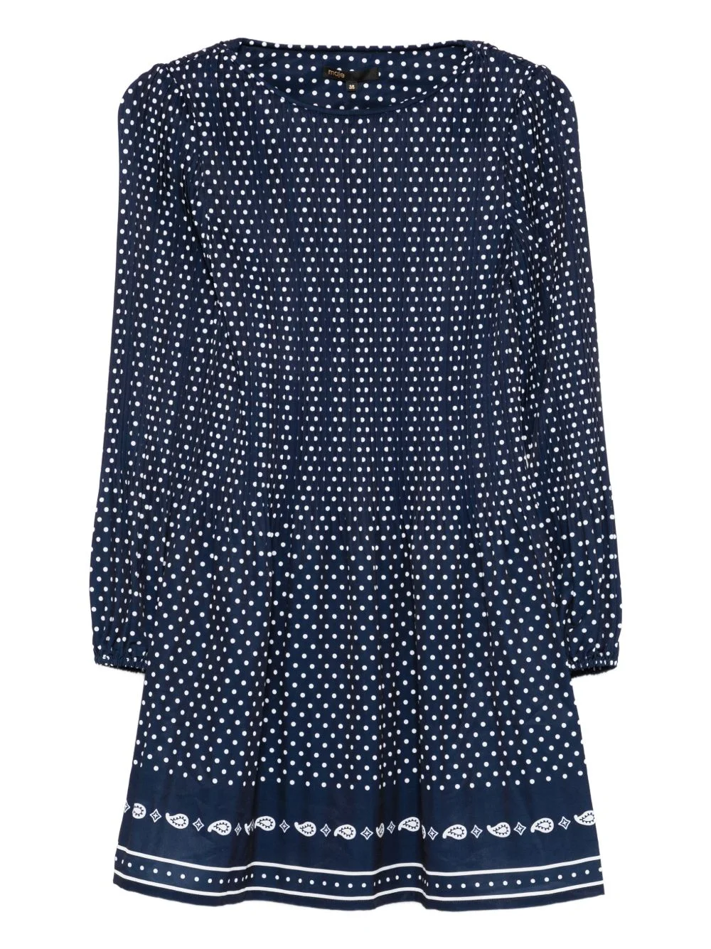 polka dot mini dress Highlights - Navy blue - Polka dot pattern - Bandana print - Gathered detail - Long sleeves Imported Composition Polyester 100% Washing instructions Hand Wash