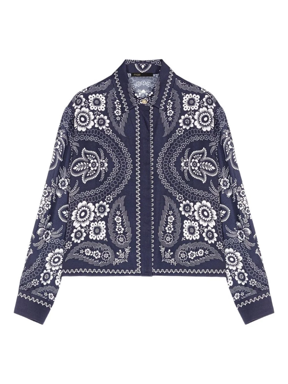 printed shirt Highlights - Navy blue - Bandana print - Front button fastening - Long sleeves - Buttoned cuffs Imported Composition Viscose 100% Washing instructions Read Manufacturer Guidelines