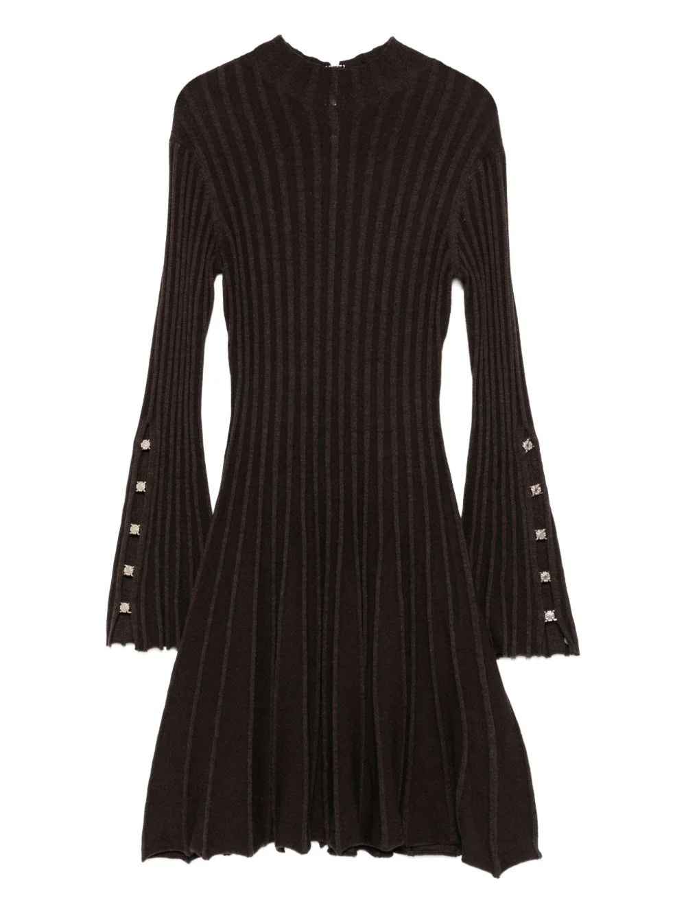 Raffie ribbed-knit bell-sleeve dress Highlights - Dark brown - Ribbed knit - Bell sleeves - Button detailing - Flared hem Imported Composition Polyester 33%, Polyamide 31%, Acrylic 18%, Wool 16%, Elastane 2% SIZE & FIT Model measurements Height 5 ft 11 in(1.8 m) Bust/Chest 31.49 in(80 cm) Hips 36.61 in(93 cm) Waist 24.4 in(62 cm) Washing instructions Hand Wash
