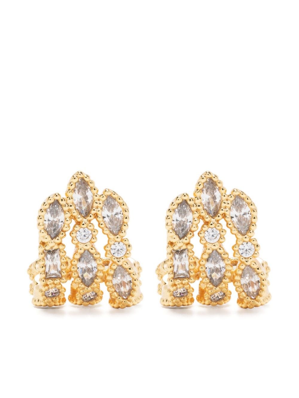 rhinestone-embellished earrings Highlights - Gold-tone - Brass - Polished finish - Stud design - Crystal embellishment - Curved corners - Post-back fastening - For pierced ears - These earrings come as a pair. Imported SIZE & FIT Measurement HEIGHT 0.55 in(1.4 cm) Weight (single earring) 3 g(3 g) WIDTH 0.43 in(1.1 cm) Washing instructions Do Not Wash/Do Not Dry Clean