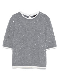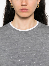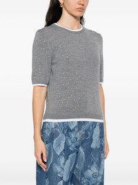 rhinestone-embellished T-shirt Highlights - Heather grey - Single rear button fastening - Contrasting trim - Crew neck - Short sleeves Imported Composition Wool 100% SIZE & FIT Model measurements Height 5 ft 9 in(1.75 m) Bust/Chest 32.67 in(83 cm) Hips 36.22 in(92 cm) Waist 24.8 in(63 cm) FittingInformation Designed for a slim fit that sits just away from the body offering a close yet comfortable fit Made with a midweight knit, this piece offers some stretch Washing instructions Dry Clean Only