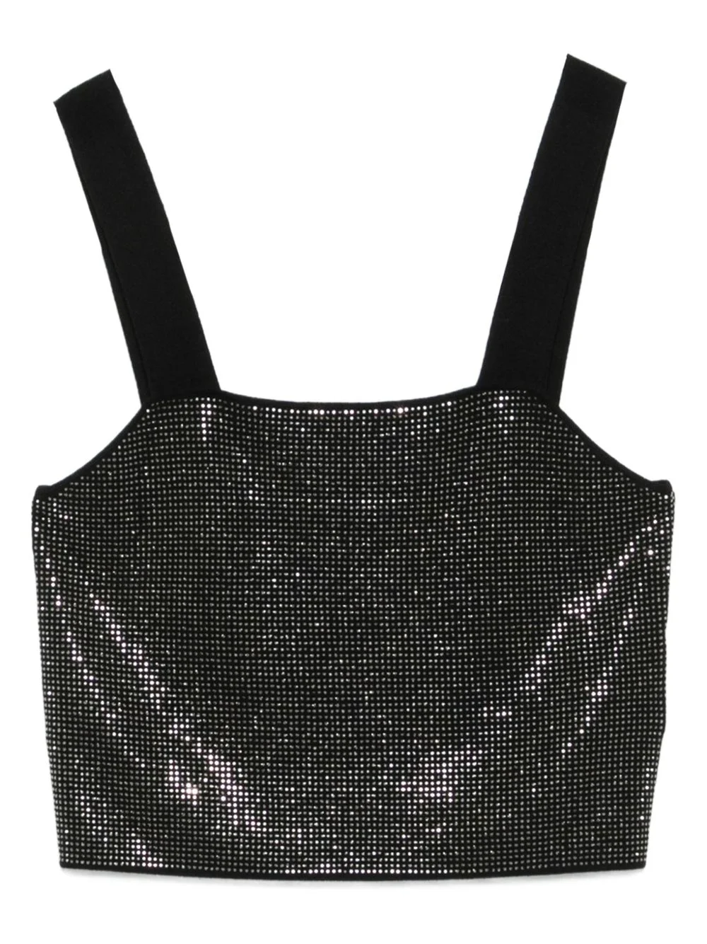rhinestone-embellished top Highlights - Black - Sequin embellishment - Square neck - Spaghetti straps - Cropped - Straight hem Imported Composition Viscose 80%, Polyamide 20% SIZE & FIT Model measurements Height 5 ft 10 in(1.77 m) Bust/Chest 33.07 in(84 cm) Hips 37 in(94 cm) Waist 24.8 in(63 cm) FittingInformation Designed for a slim fit that sits just away from the body offering a close yet comfortable fit Made with a midweight knit, this piece offers some stretch Washing instructions Specialist Cleaning