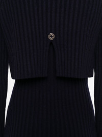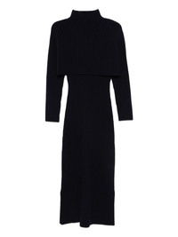 ribbed high-neck dress Highlights - Navy blue - Ribbed knit - High neck - Long sleeves - Straight skirt Imported Composition Wool 100% SIZE & FIT Model measurements Height 5 ft 10 in(1.77 m) Bust/Chest 33.07 in(84 cm) Hips 37 in(94 cm) Waist 24.8 in(63 cm) FittingInformation Designed for a slim fit that sits just away from the body offering a close yet comfortable fit The detachable panel offers the preference for a different fit Made with a midweight knit, this piece offers some stretch Washing instructions Hand Wash