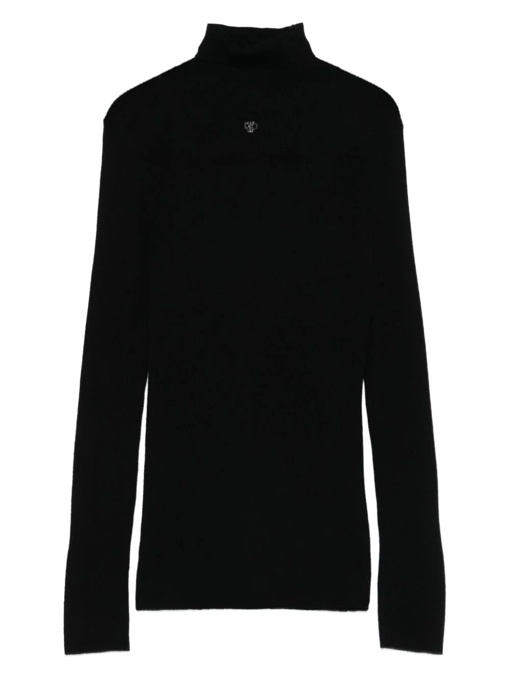 ribbed high-neck top Highlights - Black - Ribbed texture - High neck - Long sleeves - Straight hem Imported Composition Wool 88%, Silk 12% SIZE & FIT Model measurements Height 5 ft 11 in(1.8 m) Bust/Chest 31.49 in(80 cm) Hips 36.61 in(93 cm) Waist 24.4 in(62 cm) Washing instructions Hand Wash