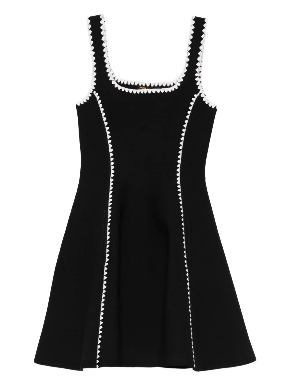 scalloped-knitted midi dress Highlights - Black - Scalloped trim - Sleeveless - Square neck Imported Composition Polyester 100%, Lycra 100%, Viscose 72%, Polybutylene Terephthalate (PBT) 28% SIZE & FIT Model measurements Height 5 ft 10 in(1.78 m) Bust/Chest 33.46 in(85 cm) Hips 36.22 in(92 cm) Waist 23.22 in(59 cm) Washing instructions Hand Wash