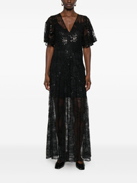 sequin-embellished maxi dress Highlights - Black - Lace detailing - Sequin embellishment - V-neck - Short sleeves Imported Composition Lining: Polyester 85%, Elastane 15% Outer: Polyamide 100% SIZE & FIT Model measurements Height 5 ft 10 in(1.77 m) Bust/Chest 32.28 in(82 cm) Hips 35.03 in(89 cm) Waist 25.19 in(64 cm) Washing instructions Read Manufacturer Guidelines