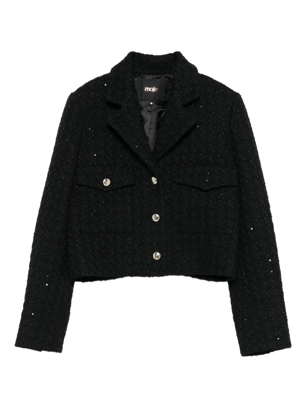 sequin-embellished tweed blazer Highlights - Black - Tweed texture - Sequin-embellishment - Flap pockets - Button fastening - Notched collar Imported Composition Fabric 100% SIZE & FIT Model measurements Height 5 ft 11 in(1.8 m) Bust/Chest 31.49 in(80 cm) Hips 36.61 in(93 cm) Waist 24.4 in(62 cm) Washing instructions Read Manufacturer Guidelines