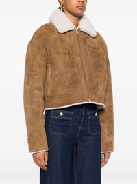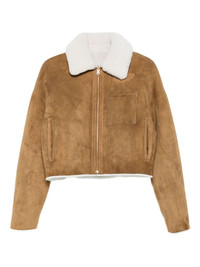 shearling-collared jacket Highlights - Camel brown - Suede texture - Zip fastening - Shearling collar - Patch pocket - Cropped length Imported Composition Outer: Sheep Skin/Shearling 100% Lining: Acetate 100% SIZE & FIT Model measurements Height 5 ft 10 in(1.77 m) Bust/Chest 33.07 in(84 cm) Hips 37 in(94 cm) Waist 24.8 in(63 cm) FittingInformation Designed to be unstructured, offering a loose fit throughout Firm shearling has a treated construction offering some durability Washing instructions Specialist Cleaning