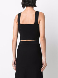 knitted crop top Highlights - Black - Cropped - Square neck - Square open back - Sleeveless - Straight hem Imported Composition Viscose 71%, Polyamide 28%, Elastane 1% SIZE & FIT Model measurements Height 5 ft 10 in(1.78 m) Bust/Chest 33.07 in(84 cm) Hips 35.82 in(91 cm) Waist 25.98 in(66 cm) Washing instructions Hand Wash